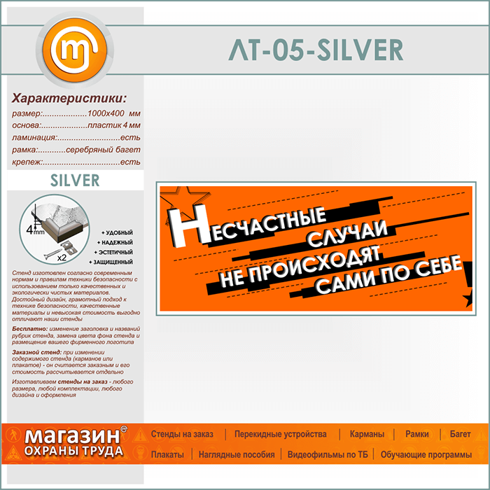 Лозунг «Несчастные случаи не происходят сами по себе» (LT-05-SILVER) в Химках купить