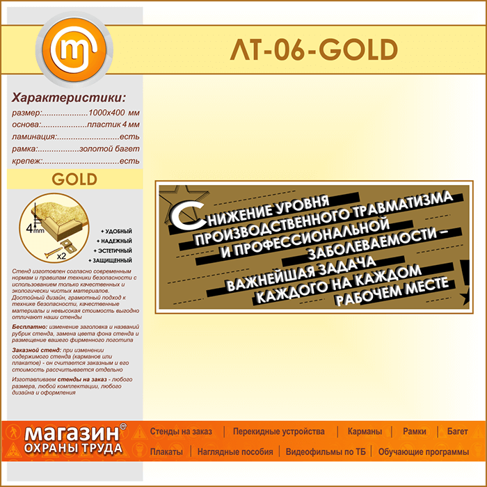 Лозунг «Снижение уровня производственного травматизма...» (LT-06-GOLD) в Химках купить