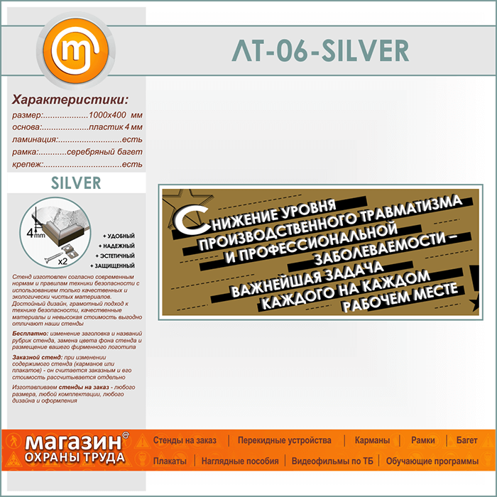 Лозунг «Снижение уровня производственного травматизма...» (LT-06-SILVER) в Химках купить