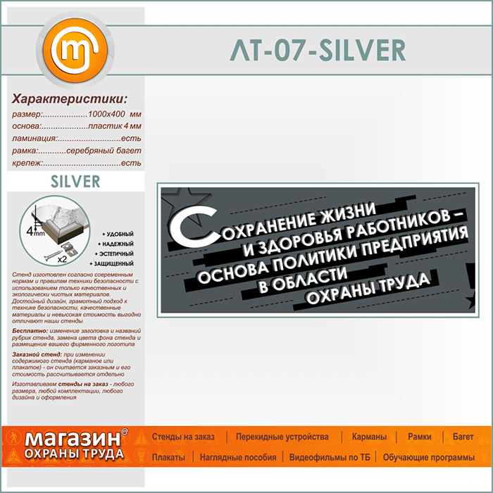 Лозунг «Сохранение жизни и здоровья работников...» (LT-07-SILVER) в Химках купить