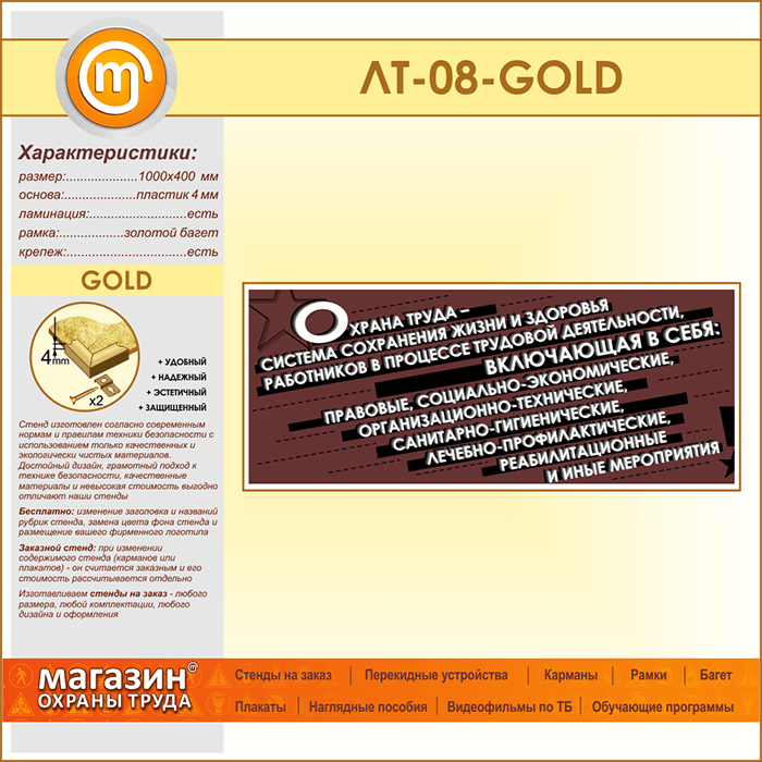 Лозунг «Охрана труда - система сохранения жизни и здоровья...» (LT-08-GOLD) в Химках купить