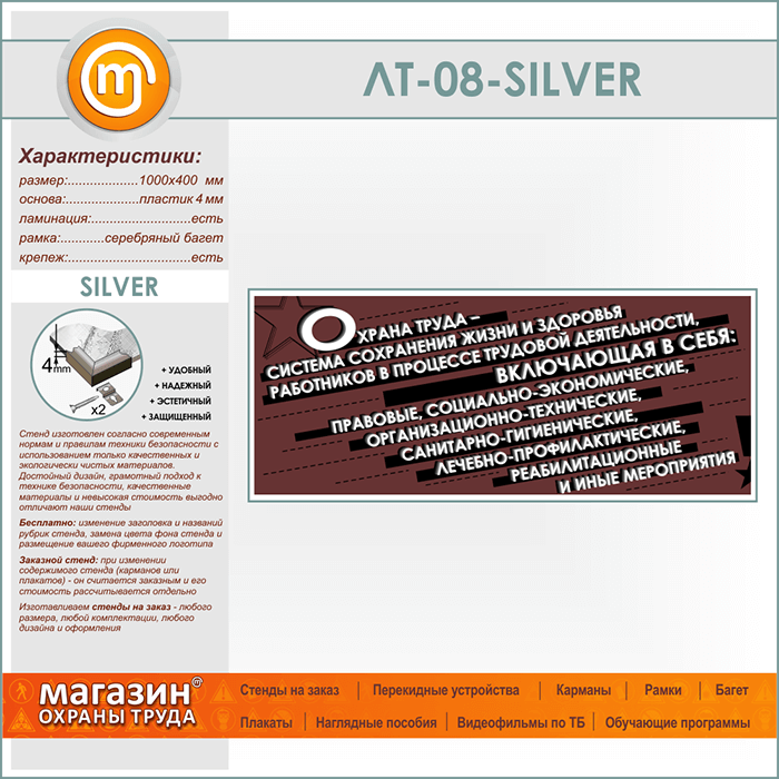 Лозунг «Охрана труда - система сохранения жизни и здоровья...» (LT-08-SILVER) в Химках купить