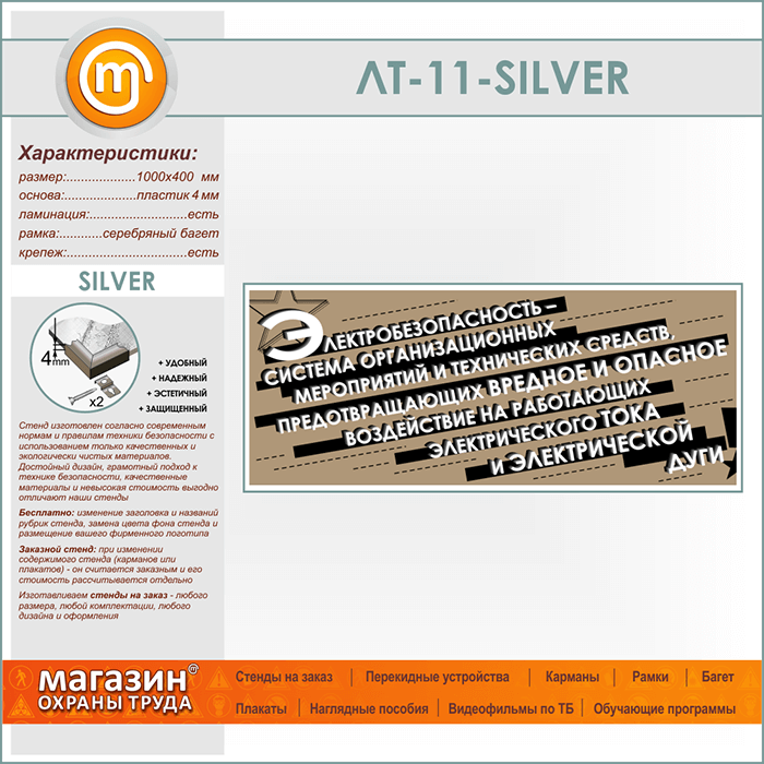 Лозунг «Электробезопасность - система мероприятий...» (LT-11-SILVER) в Химках купить