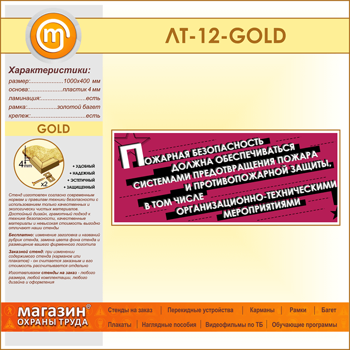 Лозунг «Пожарная безопасность должна обеспечиваться...» (LT-12-GOLD) в Химках купить