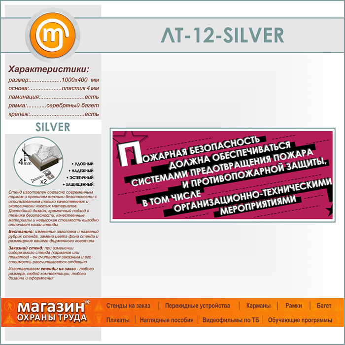 Лозунг «Пожарная безопасность должна обеспечиваться...» (LT-12-SILVER) в Химках купить