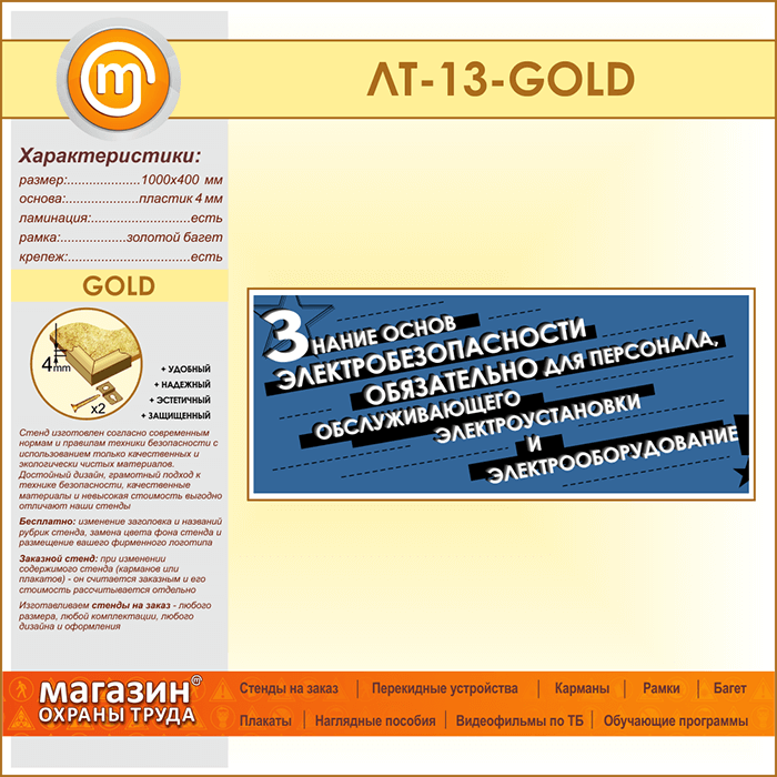 Лозунг «Знание основ электробезопасности обязательно...» (LT-13-GOLD) в Химках купить