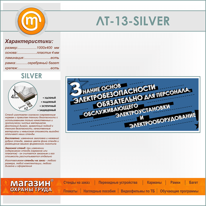 Лозунг «Знание основ электробезопасности обязательно...» (LT-13-SILVER) в Химках купить