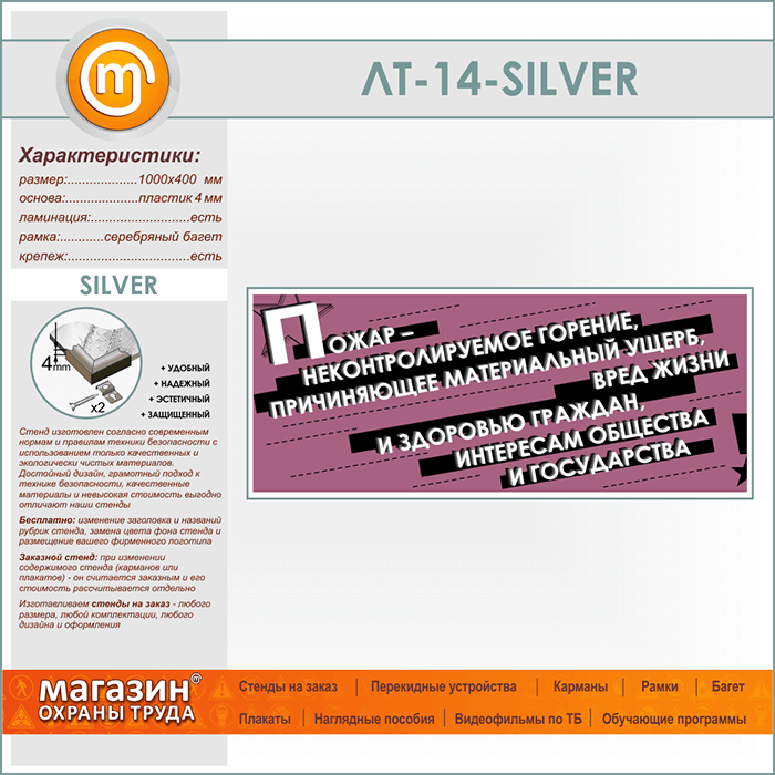 Лозунг «Пожар - неконтроллируемое горение...» (LT-14-SILVER) в Химках купить