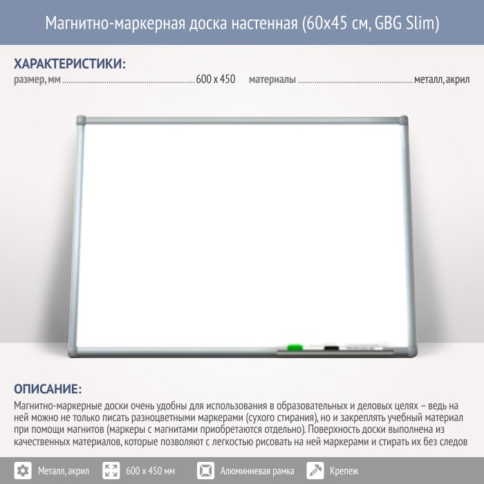 Магнитно-маркерная доска настенная (60x45 см, GBG Slim) в Химках купить