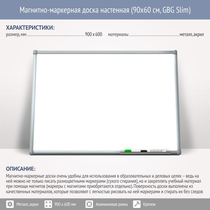 Магнитно-маркерная доска настенная (90x60 см, GBG Slim) в Химках купить