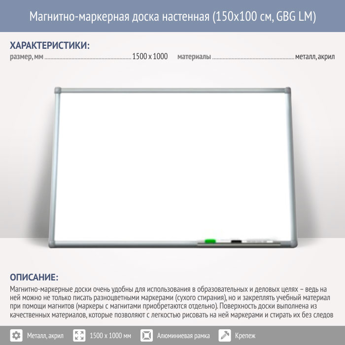 Магнитно-маркерная доска настенная (150x100 см, GBG LM) в Химках купить
