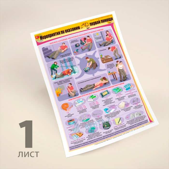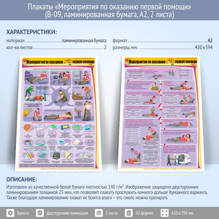 Плакаты «Мероприятия по оказанию первой помощи» (В-09, ламинированная бумага, А2, 2 листа) в Химках купить