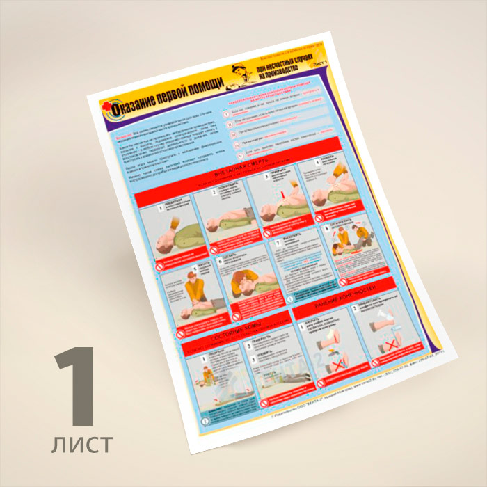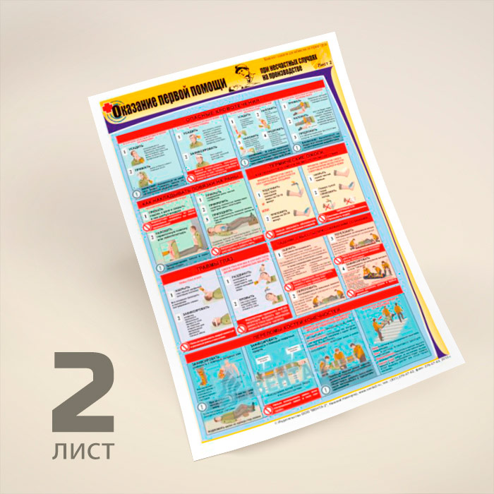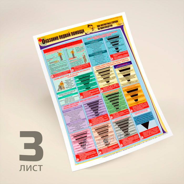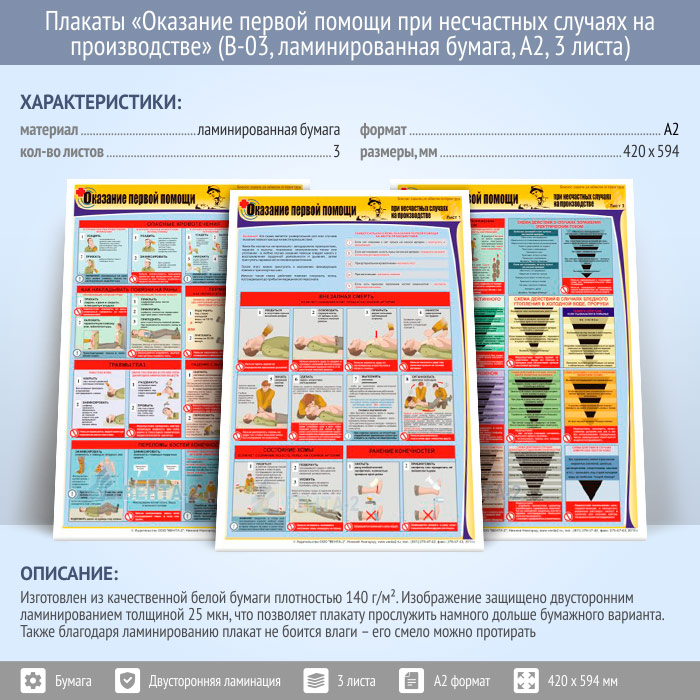 Плакаты «Оказание первой помощи при несчастных случаях на производстве» (В-03, ламинированная бумага, А2, 3 листа) в Химках купить