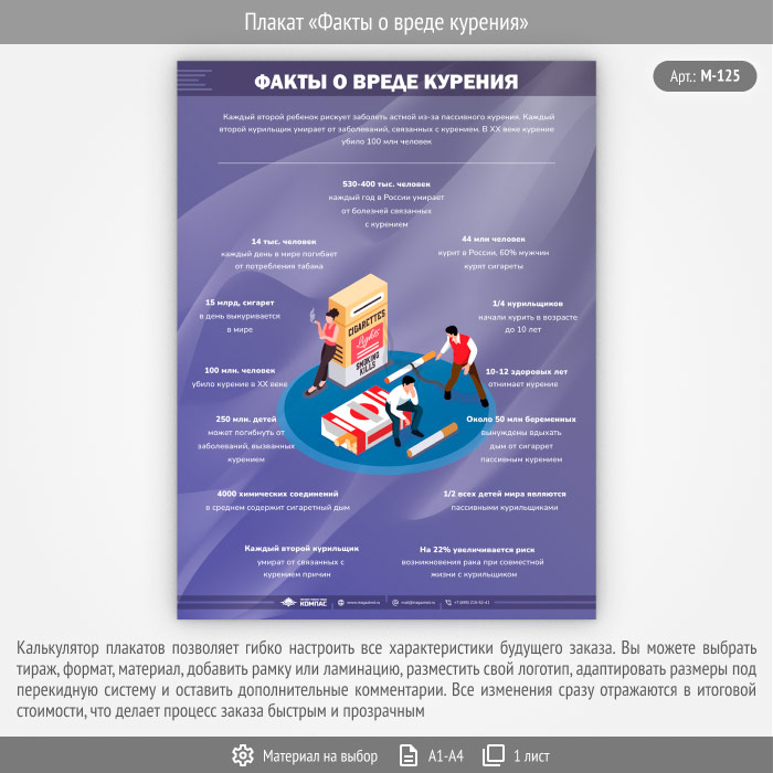 Плакат «Факты о вреде курения» (М-125, 1 лист) в Химках купить