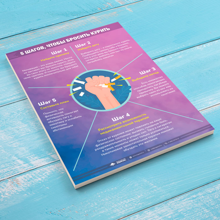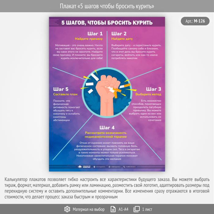 Плакат «5 шагов чтобы бросить курить» (М-126, 1 лист) в Химках купить