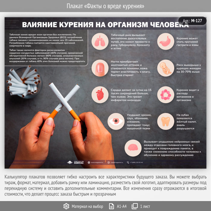 Плакат «Факты о вреде курения» (М-127, 1 лист) в Химках купить