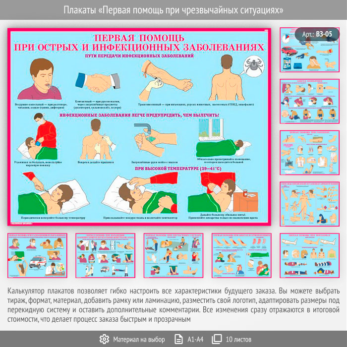 Плакаты «Первая помощь при чрезвычайных ситуациях» (ВЗ-05, 10 листов) в Химках купить