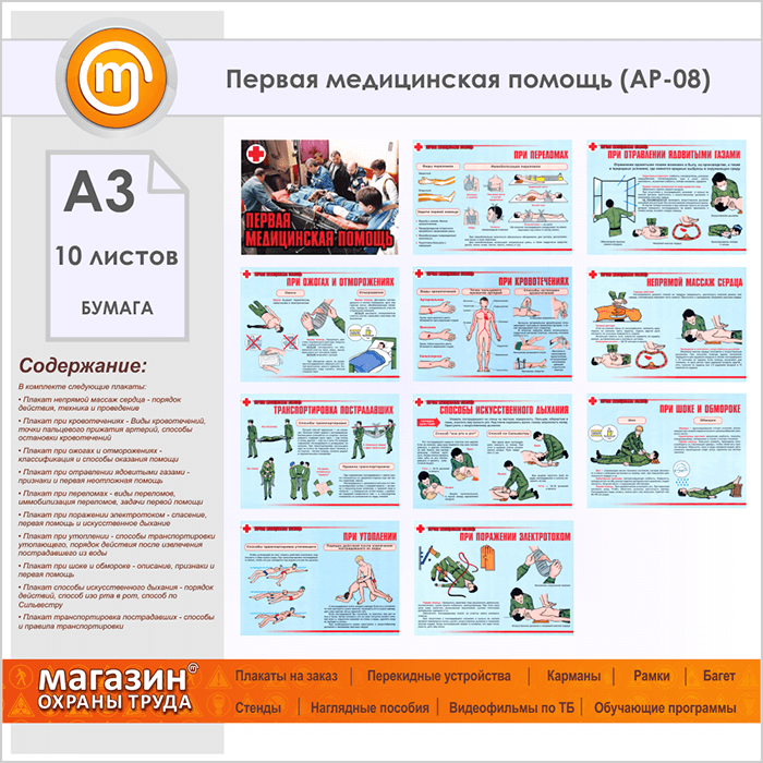 Плакаты «Первая медицинская помощь» (АР-08, бумага, А3, 10 листов) в Химках купить