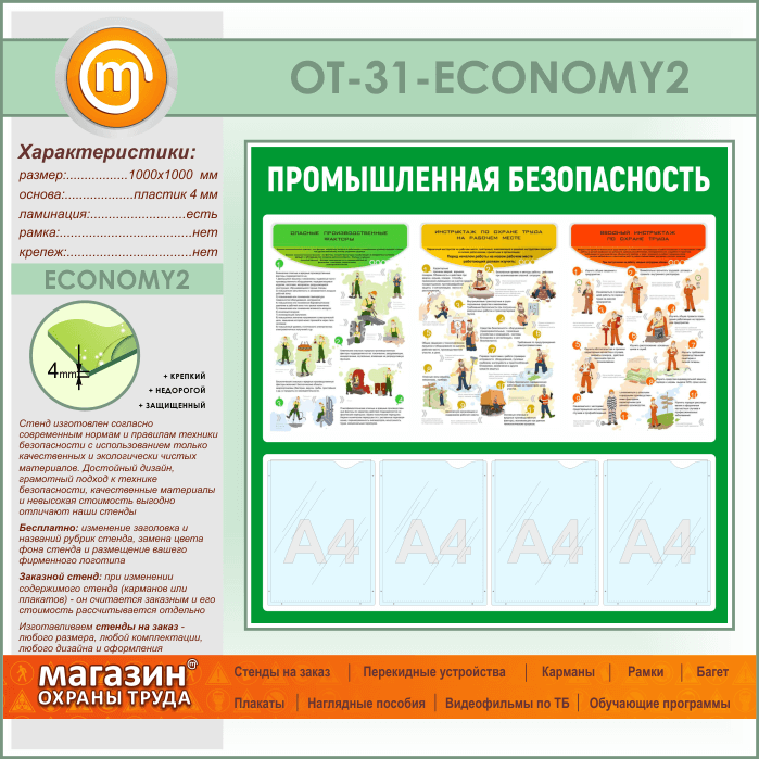 Стенд «Промышленная безопасность» с 4 карманами (OT-31-ECONOMY2) в Химках купить
