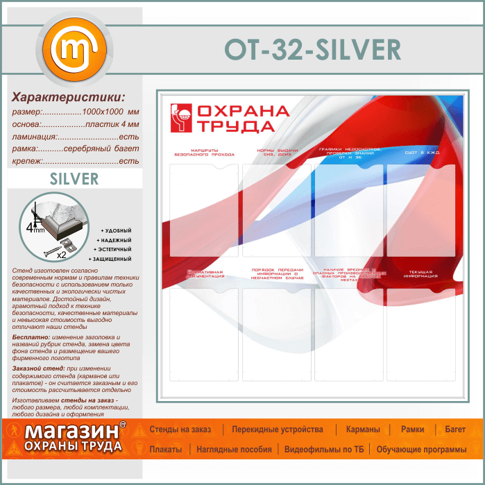 Стенд «Охрана труда» с 8 карманами (OT-32-SILVER) в Химках купить