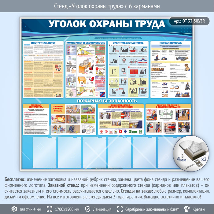 Стенд «Уголок охраны труда» с 6 карманами (OT-33-SILVER) в Химках купить
