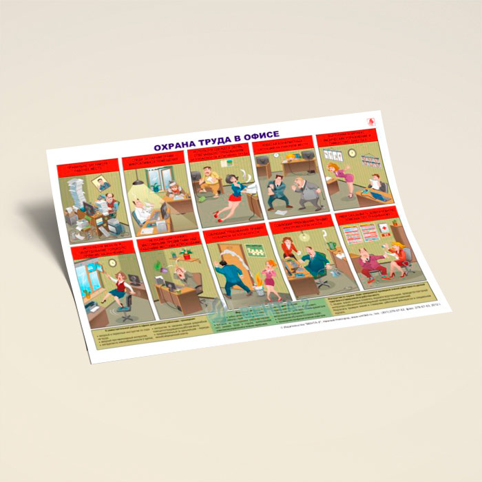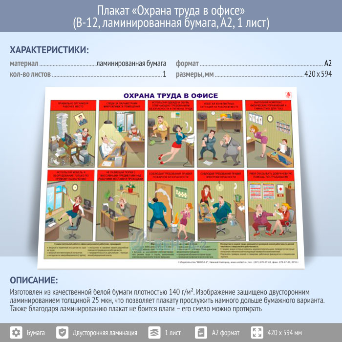 Плакат «Охрана труда в офисе» (В-12, ламинированная бумага, А2, 1 лист) в Химках купить