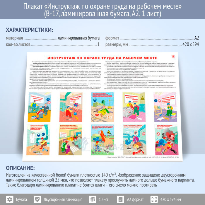 Плакат «Инструктаж по охране труда на рабочем месте» (В-17, ламинированная бумага, А2, 1 лист) в Химках купить