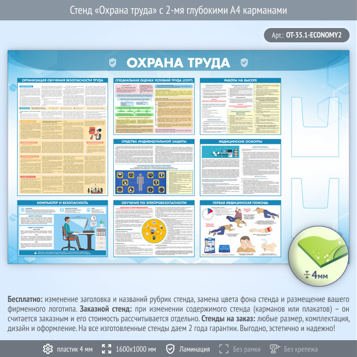Стенд «Охрана труда» с 2-мя глубокими А4 карманами (OT-35.1-ECONOMY2) в Химках купить