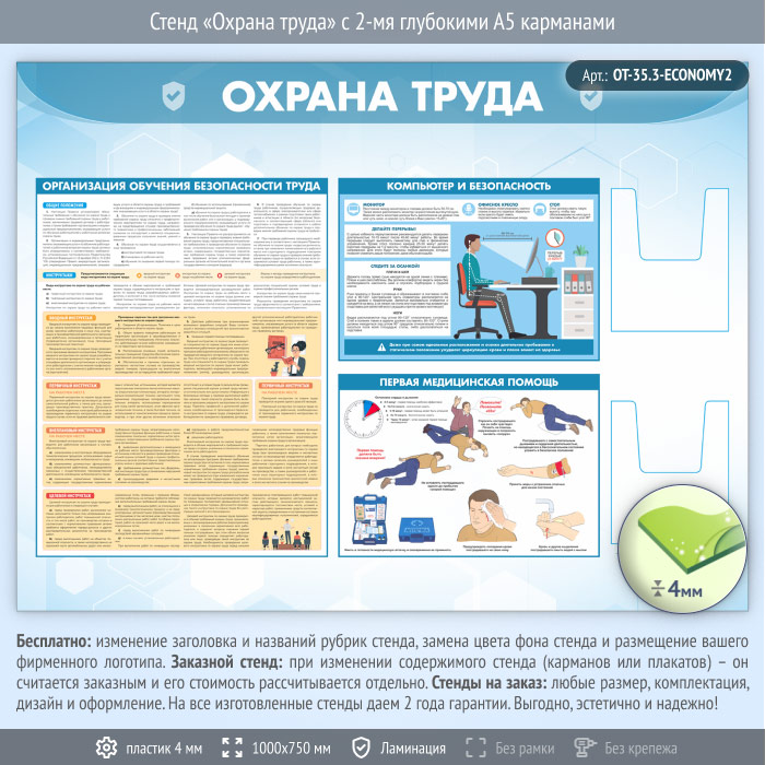 Стенд «Охрана труда» с 2-мя глубокими А5 карманами (OT-35.3-ECONOMY2) в Химках купить