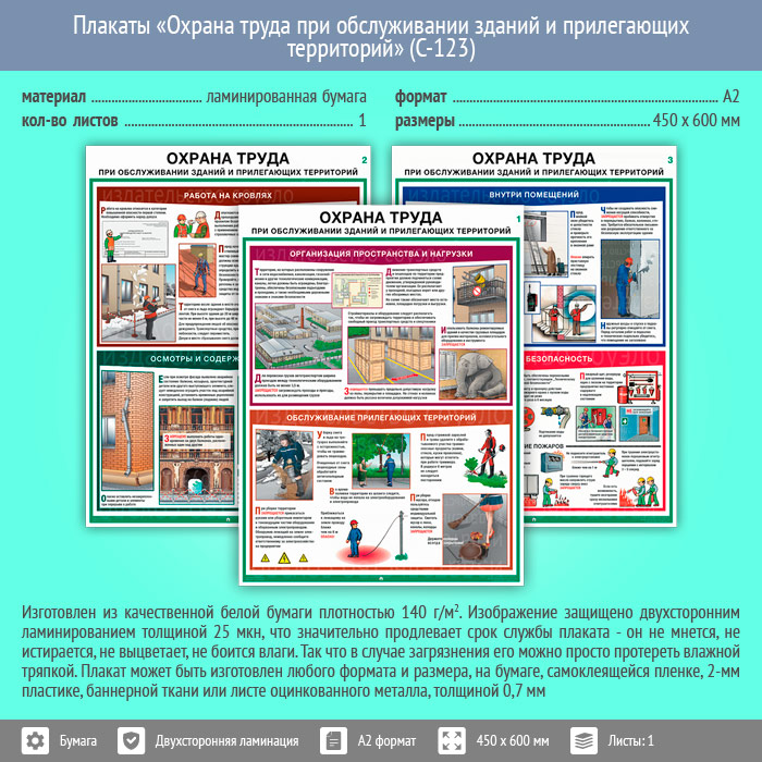 Плакаты «Охрана труда при обслуживании зданий и прилегающих территорий» (С-123, ламинированная бумага, А2, 3 листа) в Химках купить