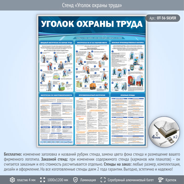 Стенд «Уголок охраны труда» (OT-36-SILVER) в Химках купить