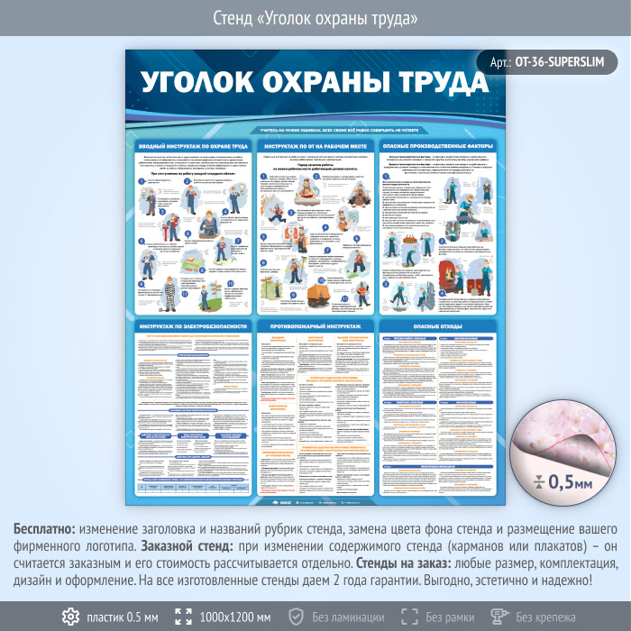 Стенд «Уголок охраны труда» (OT-36-SUPERSLIM) в Химках купить