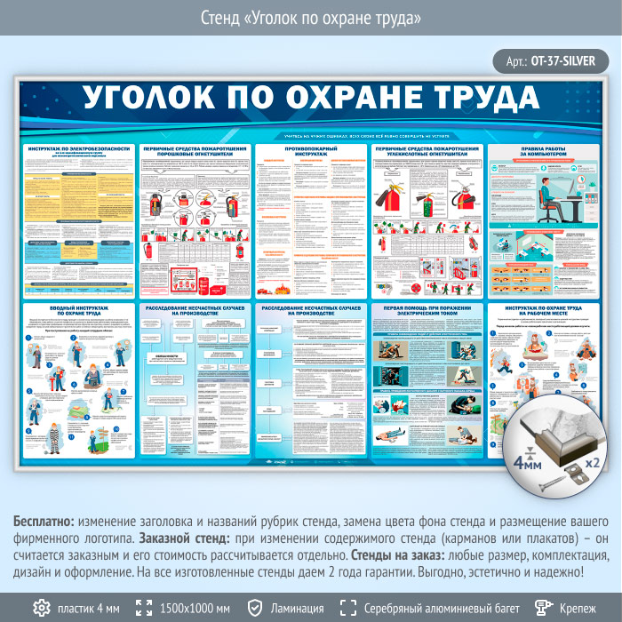 Стенд «Уголок по охране труда» (OT-37-SILVER) в Химках купить