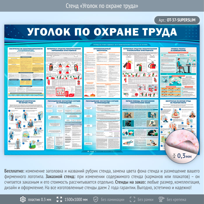 Стенд «Уголок по охране труда» (OT-37-SUPERSLIM) в Химках купить