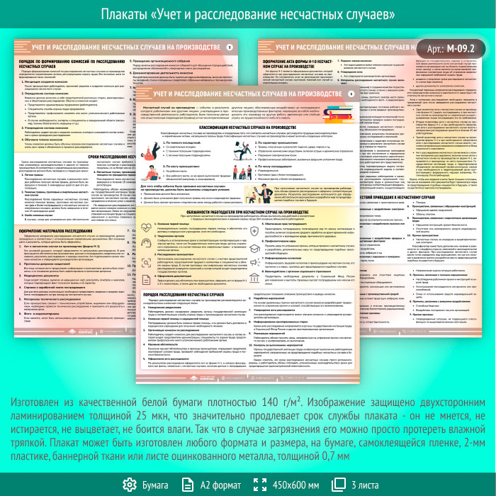 Плакаты «Учет и расследование несчастных случаев» (М-09.2, ламинированная бумага, А2, 3 листа) в Химках купить