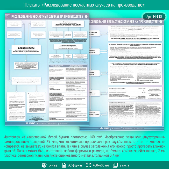 Плакаты «Расследование несчастных случаев на производстве» (М-123, ламинированная бумага, А2, 2 листа) в Химках купить