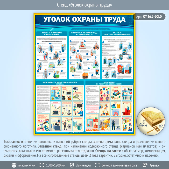 Стенд «Уголок охраны труда» (OT-36.2-GOLD) в Химках купить