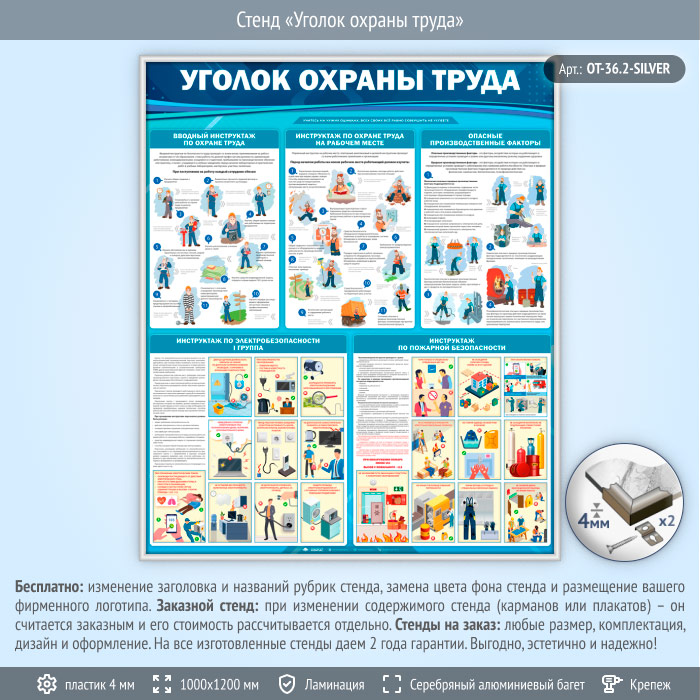 Стенд «Уголок охраны труда» (OT-36.2-SILVER) в Химках купить