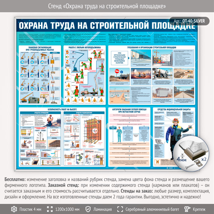Стенд «Охрана труда на строительной площадке» (OT-40-SILVER) в Химках купить