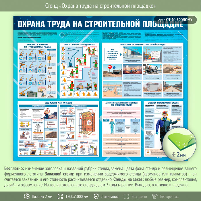 Стенд «Охрана труда на строительной площадке» (OT-40-ECONOMY) в Химках купить