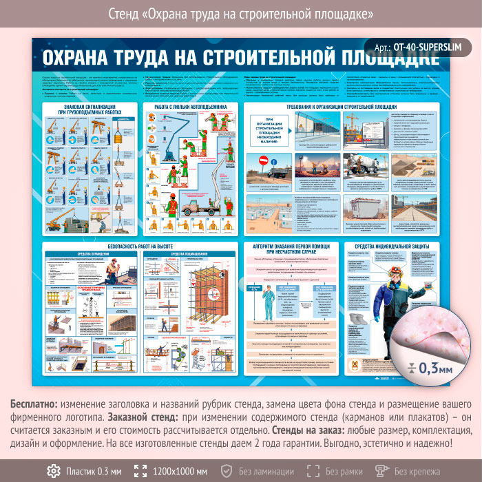 Стенд «Охрана труда на строительной площадке» (OT-40-SUPERSLIM) в Химках купить