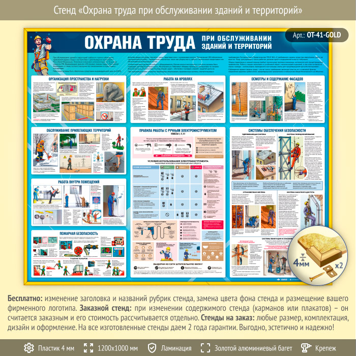 Стенд «Охрана труда при обслуживании зданий и территорий» (OT-41-GOLD) в Химках купить