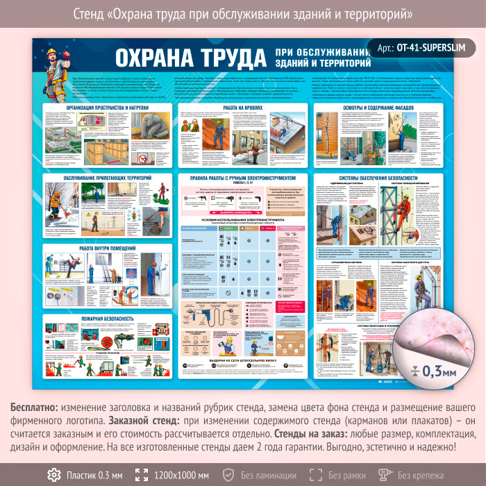 Стенд «Охрана труда при обслуживании зданий и территорий» (OT-41-SUPERSLIM) в Химках купить