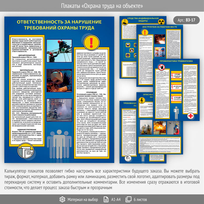 Плакаты «Охрана труда на объекте» (ВЗ-17, 6 листов) в Химках купить
