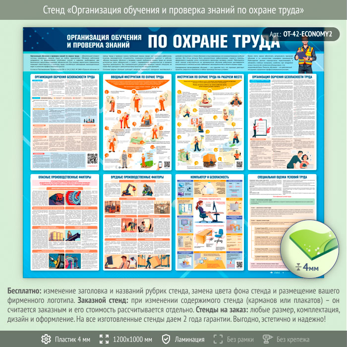 Стенд «Организация обучения и проверка знаний по охране труда» (OT-42-ECONOMY2) в Химках купить