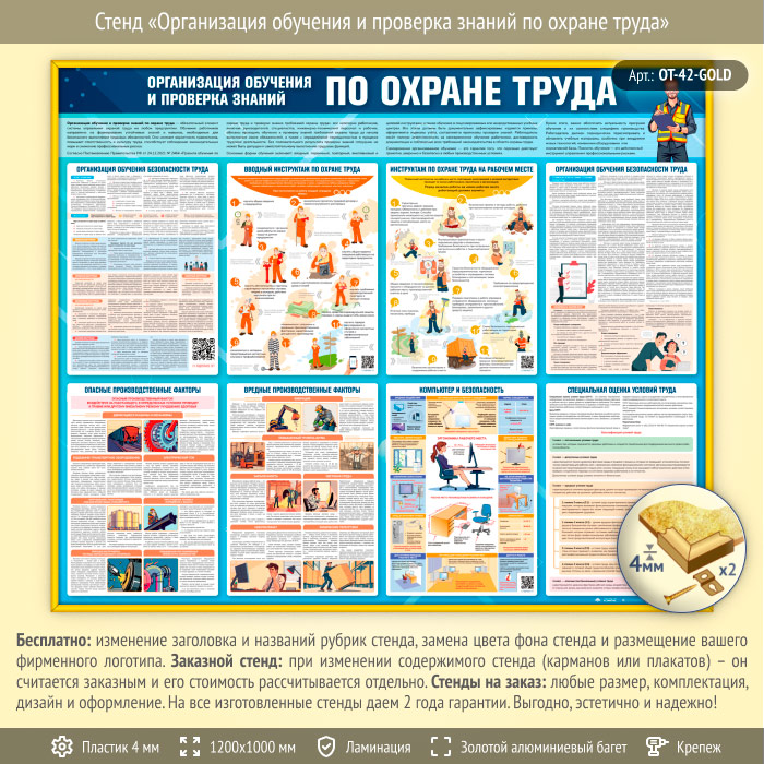 Стенд «Организация обучения и проверка знаний по охране труда» (OT-42-GOLD) в Химках купить