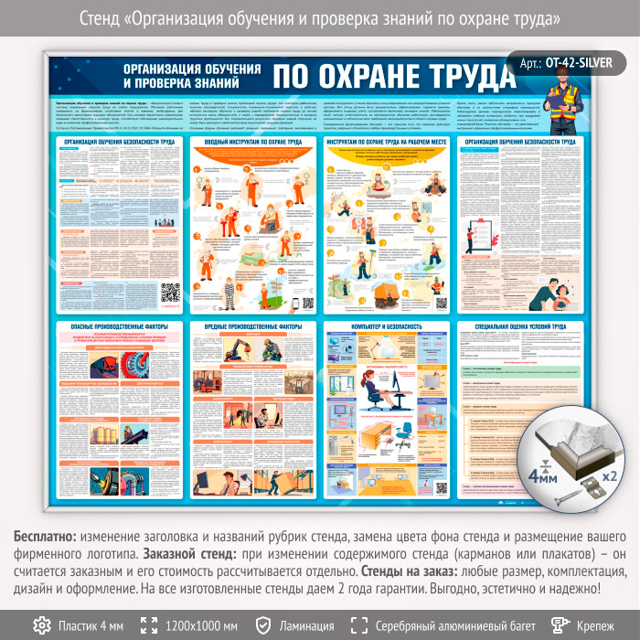 Стенд «Организация обучения и проверка знаний по охране труда» (OT-42-SILVER) в Химках купить