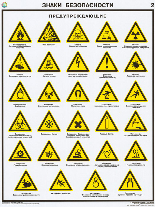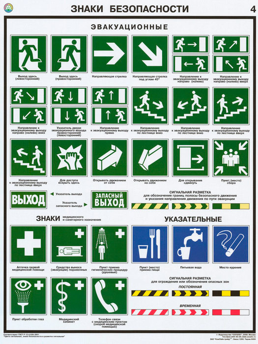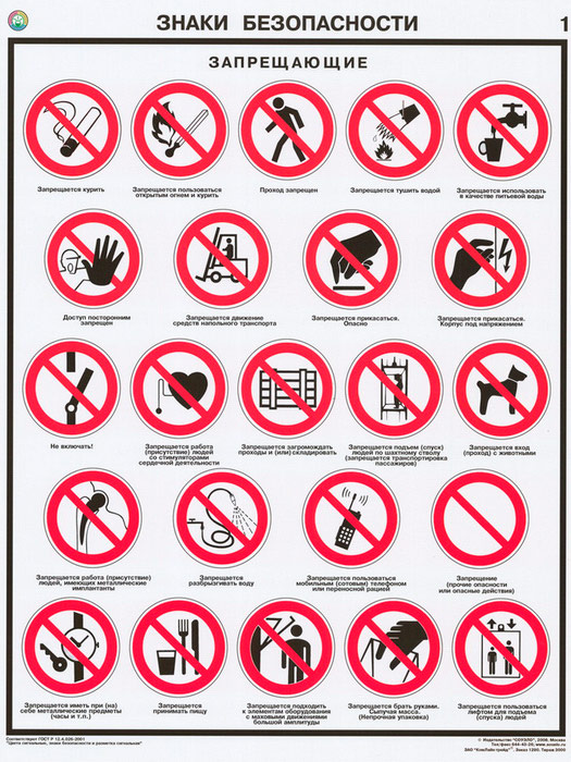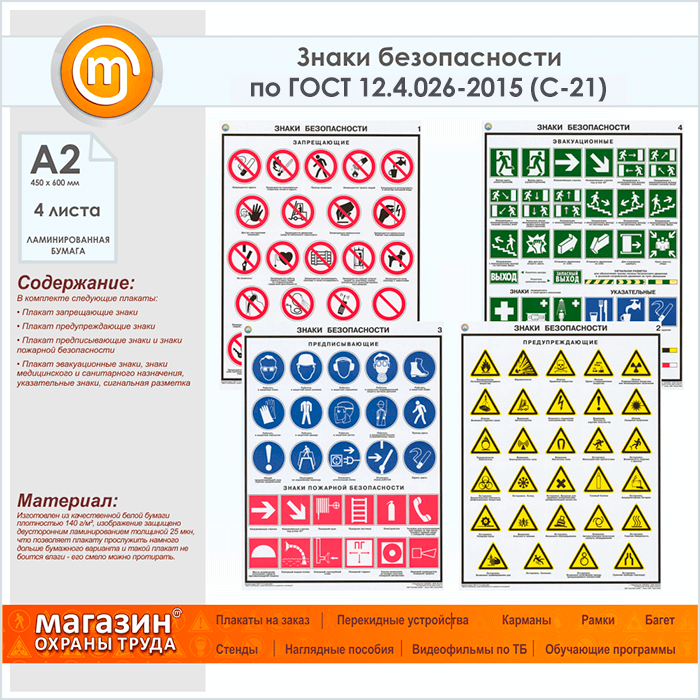 Плакаты «Знаки безопасности по ГОСТ 12.4.026-2015» (С-21, ламинированная бумага, А2, 4 листа) в Химках купить