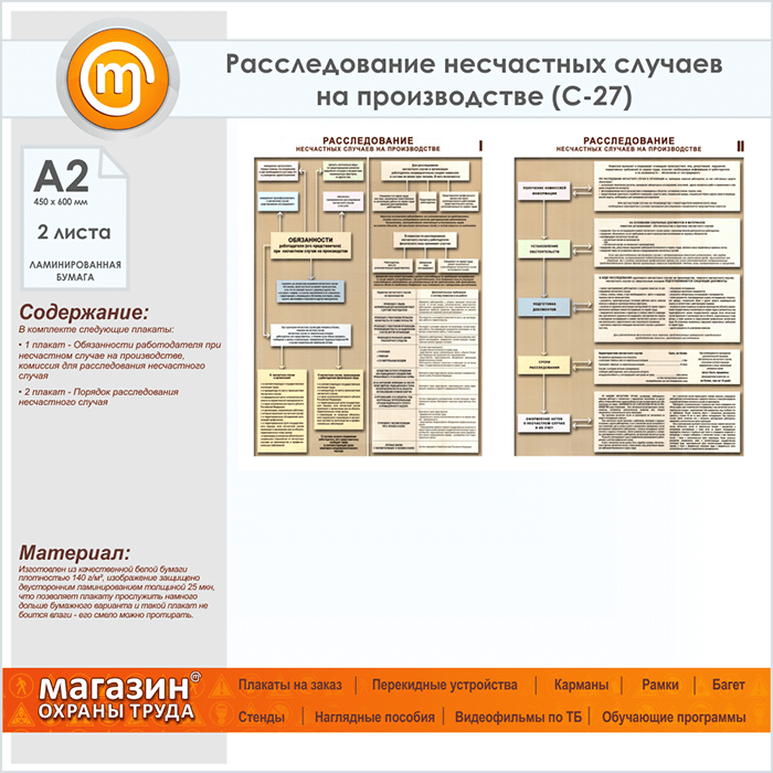 Плакаты «Расследование несчастных случаев на производстве» (С-27, ламинированная бумага, А2, 2 листа) в Химках купить