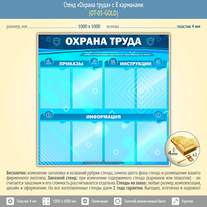 Стенд «Охрана труда» с 8 карманами (OT-05-GOLD) в Химках купить